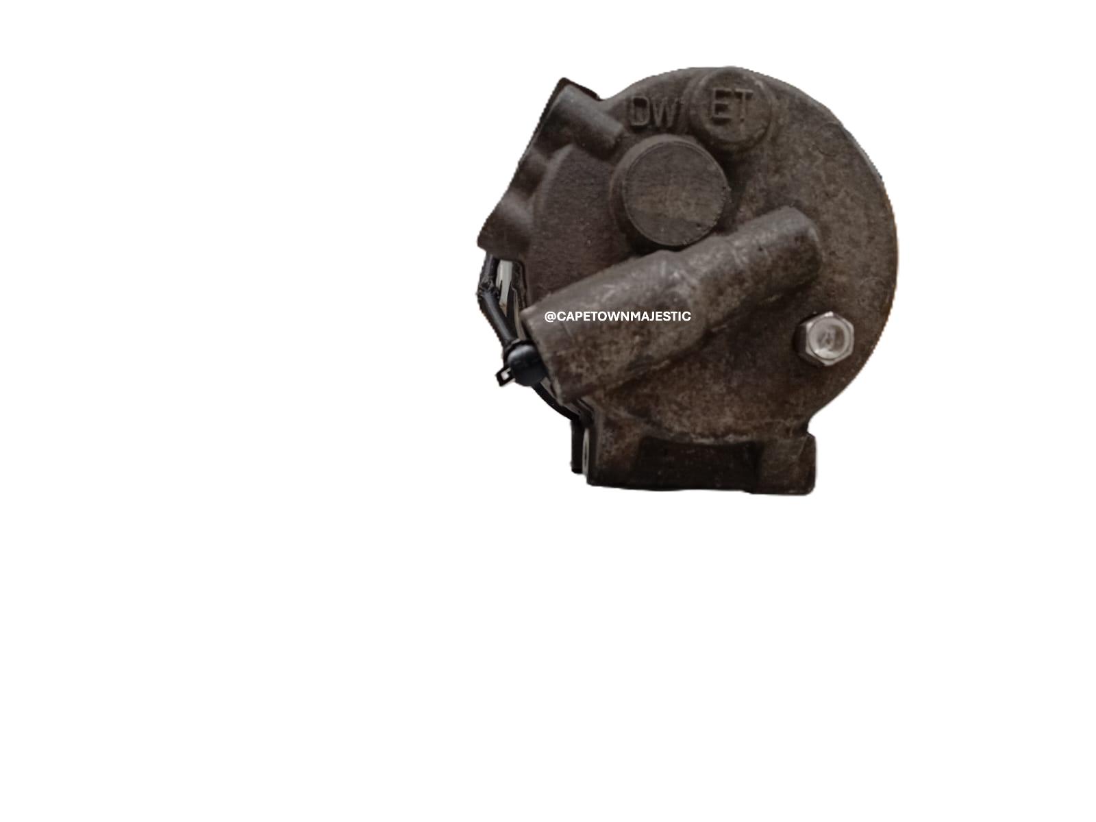 The aircon pump is powered by the engine via a drive belt and pulley assembly. When the air conditioning system is activated, the magnetic clutch engages and the compressor begins compressing the refrigerant gas. The refrigerant is then pushed through the condenser where heat is released, before moving to the evaporator where cold air is produced and blown into the vehicle interior.